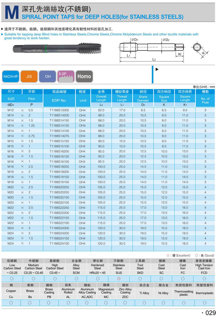 25. 美制螺紋護套絲攻(螺旋型) 042