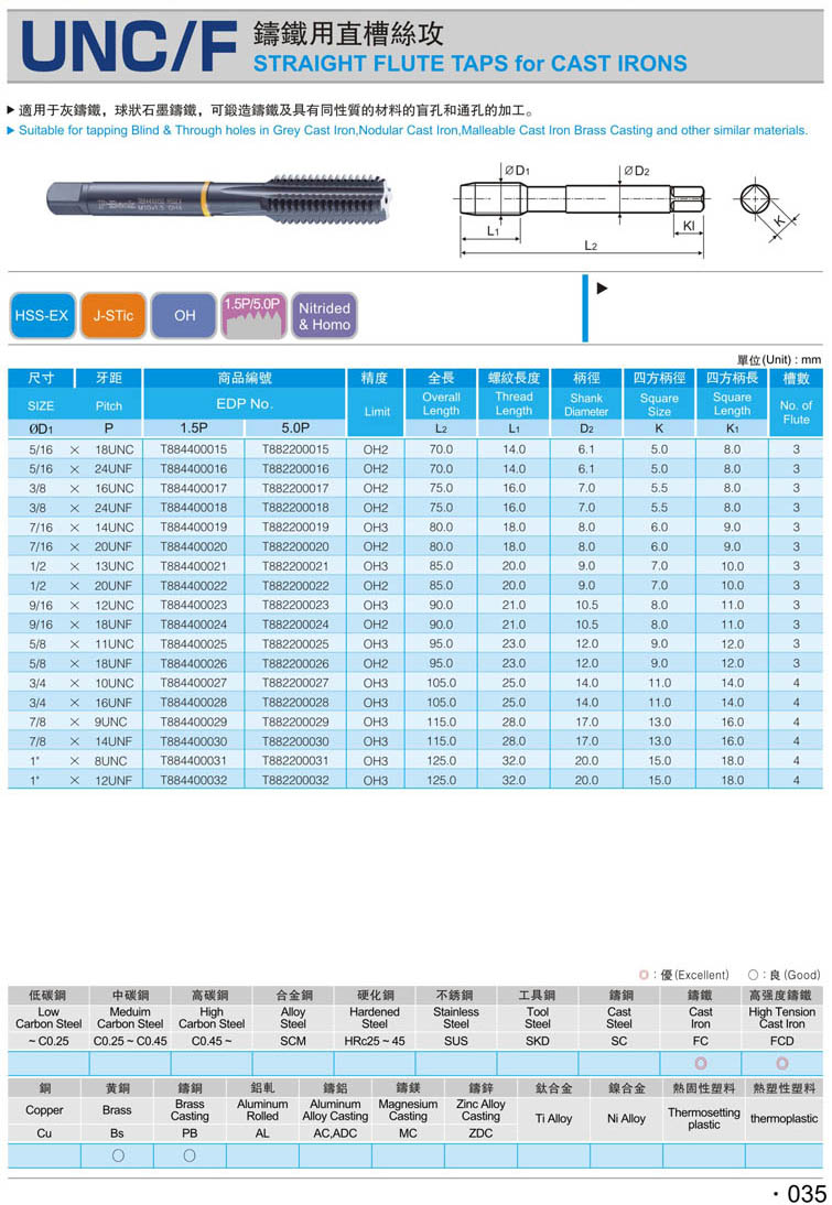 25. 美制螺紋護套絲攻(螺旋型) 042
